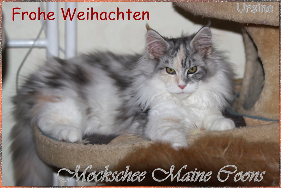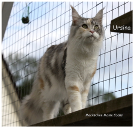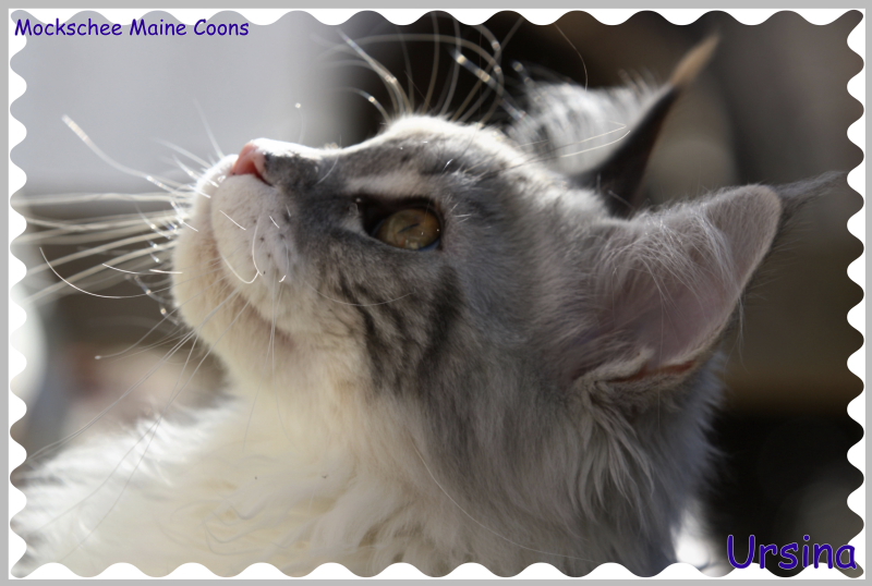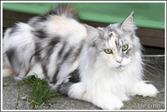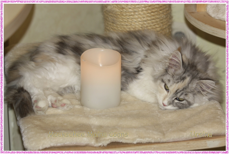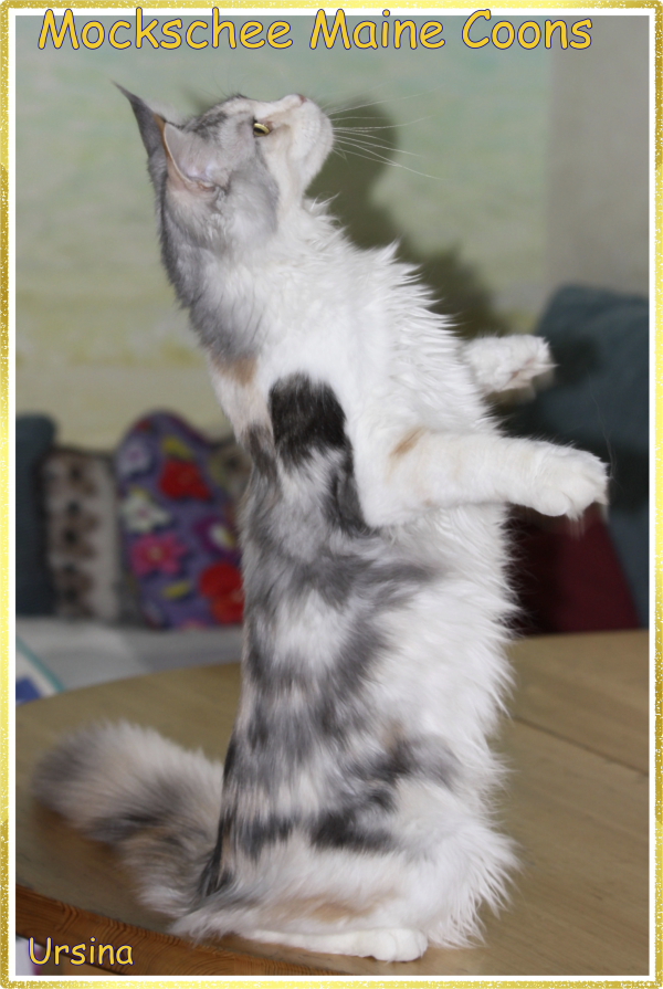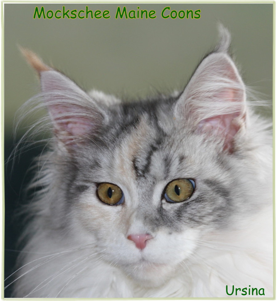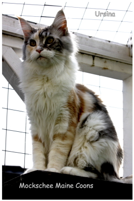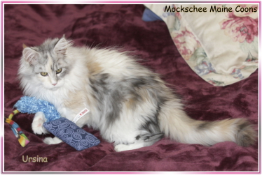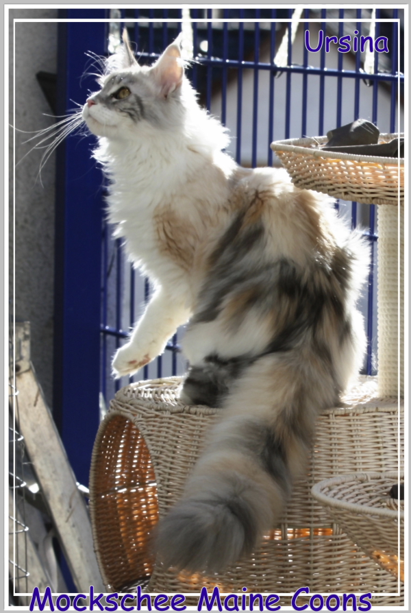 Ursina heißt die kleine Bärin und der Name ist Programm! Sie ist absolut selbstbewußt und dabei vollkommen lieb. Sie bewegt sich im ganzen Hause, als wäre sie schon immer hier. Auch das Knurren und Fauchen einiger anderer Katzen ignoriert sie einfach! Sie ist sooo schmusig und läßt sich sogar gerne kämmen! Ein ganz, ganz tolles Kätzchen! Ich bin schon sehr gespannt, wie sie sich entwickeln wird. Leider ist es ja nun nichts mit dem Traum von Coonie-Babys mehr! Aber sie ist trotzdem meine Seelenkatze!