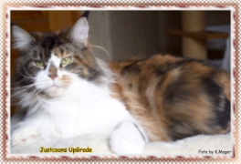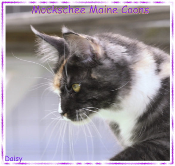 Die Mama ist eine riesige Superkatze in einem satten brown cl. torbie mit weiß! Ihre Knubbelschnute ist genial