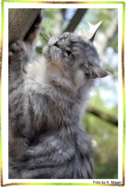 Der Papa ist ein sehr großer eindruckvoller Katermann in black-silver cl. tabby, der sehr gerne schmust und