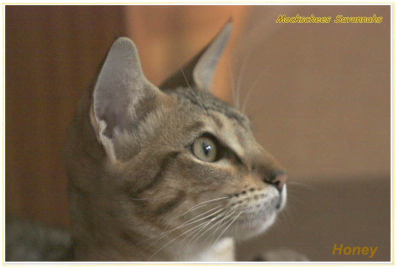Honey, mein Honey-Baby wird immer mein Honey-Baby bleiben! Sie ist sehr anhänglich und schmust gerne, liegt bei mir auf dem Schoß und will gestreichelt werden! Sie ist mächtig gewachsen und hat gut 4 kg! Ich habe schon Angst, dass sie zu dick wird, aber sie frißt halt für ihr Leben gerne, und leider alles, sie ist überhaupt nicht wählerisch! Wir freuen uns schon auf ihre ersten Kinderchen mit dem tollen Lamin als Papa!