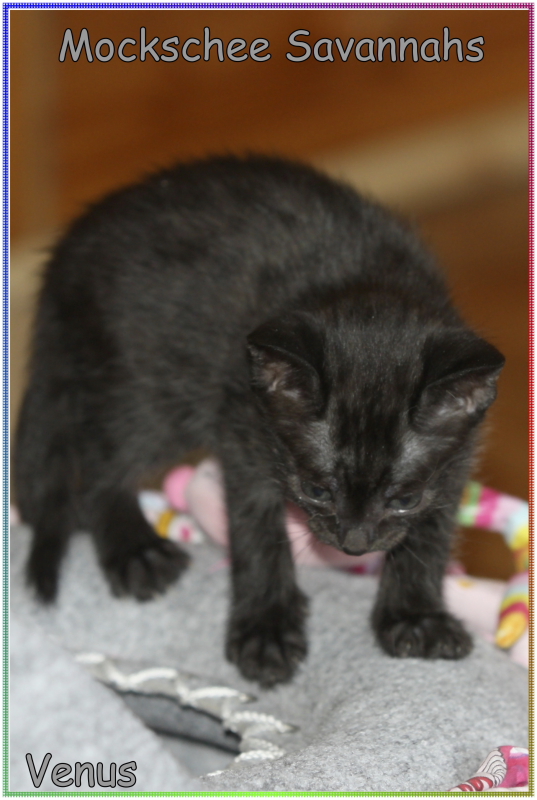 Dies fiel mir sofort ein, als ich sah, dass es ein Mädchen war. Ich denke sie wird soooo schön, wie besungen! Vor allen Dingen ist sie aber eine Schmusemaus geworden. Sobald sie mich sieht, will sie auf den Schoß! Sofort dreht sie um und ist wieder da, wenn ich sie heruntersetze! Es ist schwierig aus dem kleinen Kittenlaufstall aufzustehen, ohne auf sie zu treten, weil sie unbedingt mit will! Das geht schon so seit der ersten Woche. So etwas habe ich nur sehr selten erlebt und eigentlich nur bei Flaschenbabys, aber ein Fläschchen will sie gar nicht, nur schmusen!